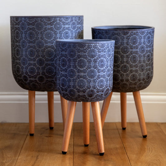 Patterned Flower Indoor Planter on Legs - Dark Grey