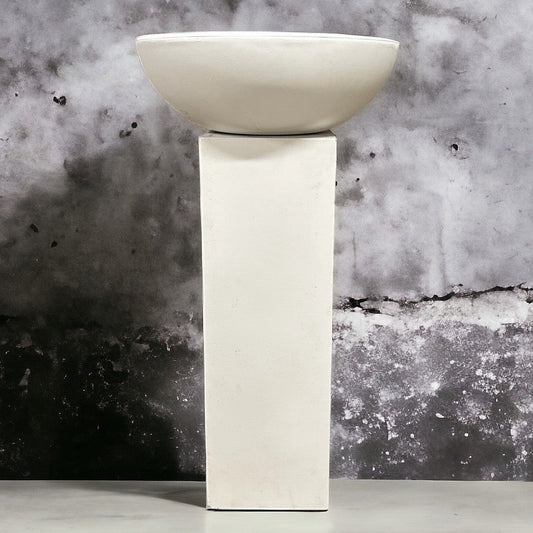 Water Feature / Bird Bath / Shallow Bowl Planter on Plinth - White